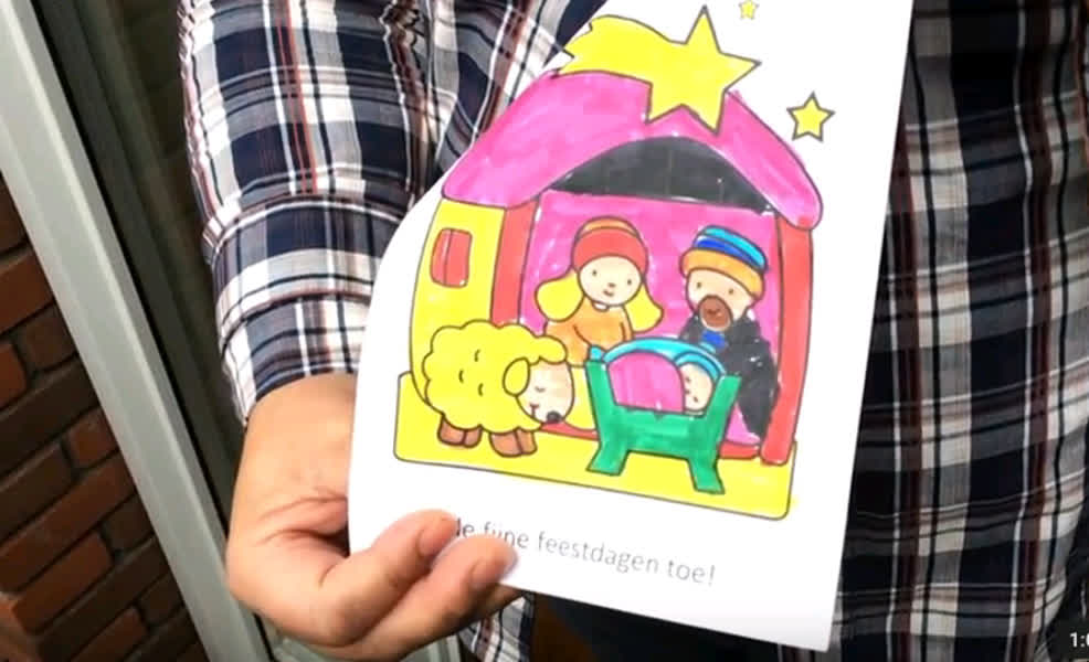 De kinderen belden aan bij bewoners. Bij wie opendeed zongen ze een kerstliedje en gaven een kaart. Bij mensen die niet thuis waren, gooiden ze een kaartje in de bus.
