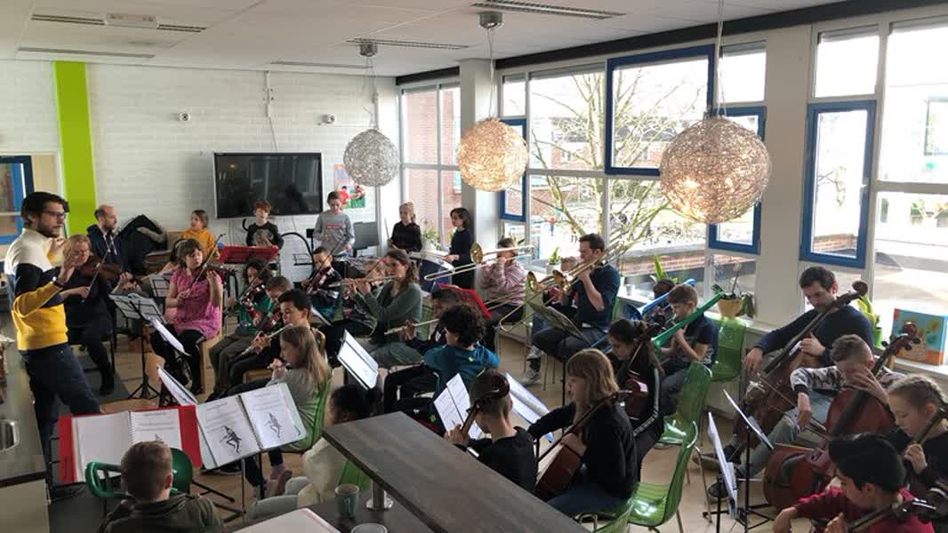 "Je kan op een instrument leren spelen, dat is echt leuk" , zegt de bijna 10-jarige Jeremiah. "Op veel andere scholen kan dat niet", vult z'n 9-jarig klasgenootje Isabella aan. Hun school werkt dan ook samen met het Leerorkest Drechtsteden.