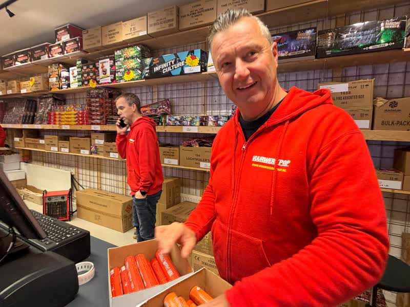 Klanten slaan nog even massaal in. Youri vertelt dat hij een echte vuurwerkliefhebber is. "Ik ga op oudejaarsdag om zes uur 's avonds beginnen. Laten we hopen dat we het wegkrijgen. Ik heb genoeg om een mooie show te geven", zegt hij als understatement.