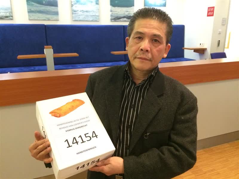 Vietnamese loempiaverkoper Xuan Tran heeft vanavond meer dan 14.000 handtekeningen aangeboden aan de raad. Hij wil daarmee voorkomen dat zijn kraam verdwijnt.