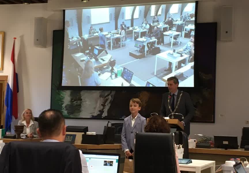 Lucas van Dijk (9) geïnstalleerd als nieuwe kinderburgemeester