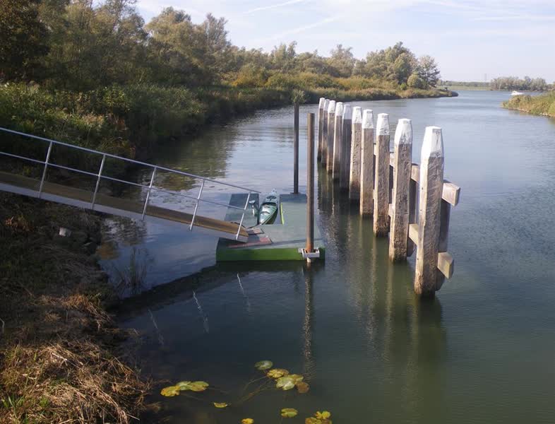 Makkelijker kanoën in Biesbosch door steiger bij Spieringsluis