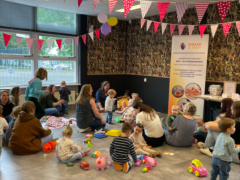Er is koffie, thee en gebak en de eerste moeders druppelen langzaam binnen. De moeders kletsen met elkaar terwijl de pasgeboren aanhang met elkaar speelt. Aanhang ja, de mama’s staan hier namelijk een keer in de maand even centraal. “Wij kunnen met elkaar kletsen, terwijl onze kinderen zorgeloos met elkaar spelen. Zo hebben we ook even rust”, glimlacht Marta, een van de mama’s.