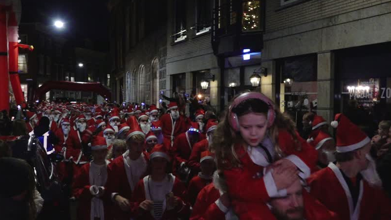 Tijdens de Santa Run Dordrecht renden dit jaar maar liefst 900 kerstmannen mee: het grootste aantal ...