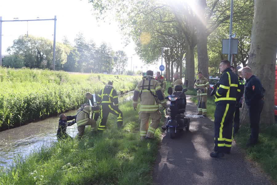 De brandweerman heeft de scootmobiel uit de sloot gehaald. De man is nagekeken door ambulancepersoneel, maar hoefde niet mee naar het ziekenhuis.