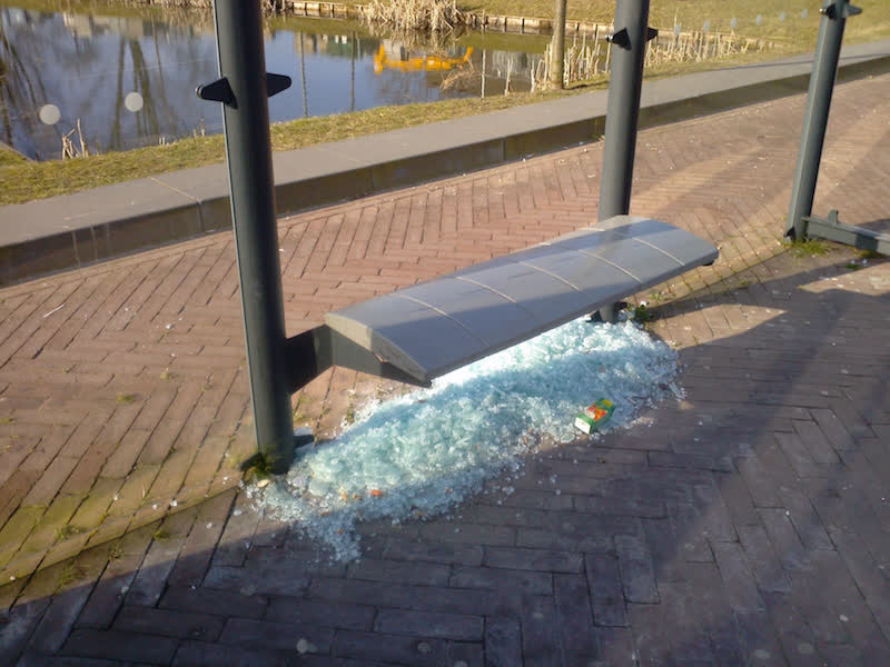 De man van 22 zou aan het begin van de middag een ruit van de abri kapot hebben getrapt. Zelf zegt hij dat hij aan de achterzijde tegen de ruit leunde en dat die toen versplinterde. In het hokje stonden drie jonge vrouwen uit Papendrecht. Zij raakten niet gewond.