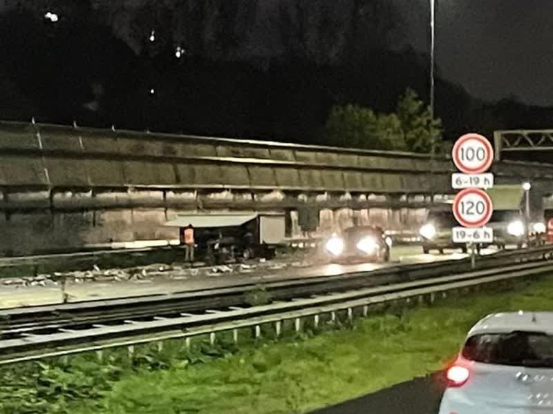 Marktkraam belandt op A15, snelweg bezaaid met kaas