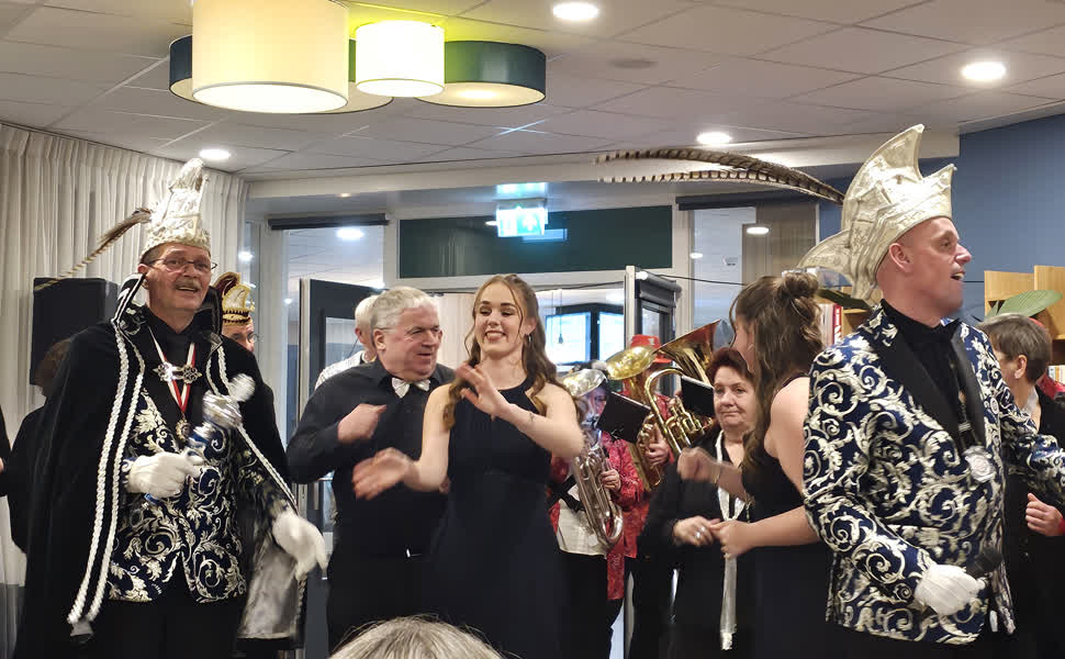 Nummers van Abba, Nederlandstalige muziek ondersteund door de Dordtse blazers van kapel De Afzakkers en acts waarbij tientallen vrolijk uitgedoste karakters letterlijk de revue passeren. Zo'n 15 vrijwilligers werken zich de komende weken in het zweet, waarbij ze langsgaan bij negen zorginstellingen in de streek. Zo werden er al feestjes gebouwd met bewoners van De Linde in de Dordtse Bankastraat en Nederburgh aan de Zwijndrechtse Duivenvoorde.