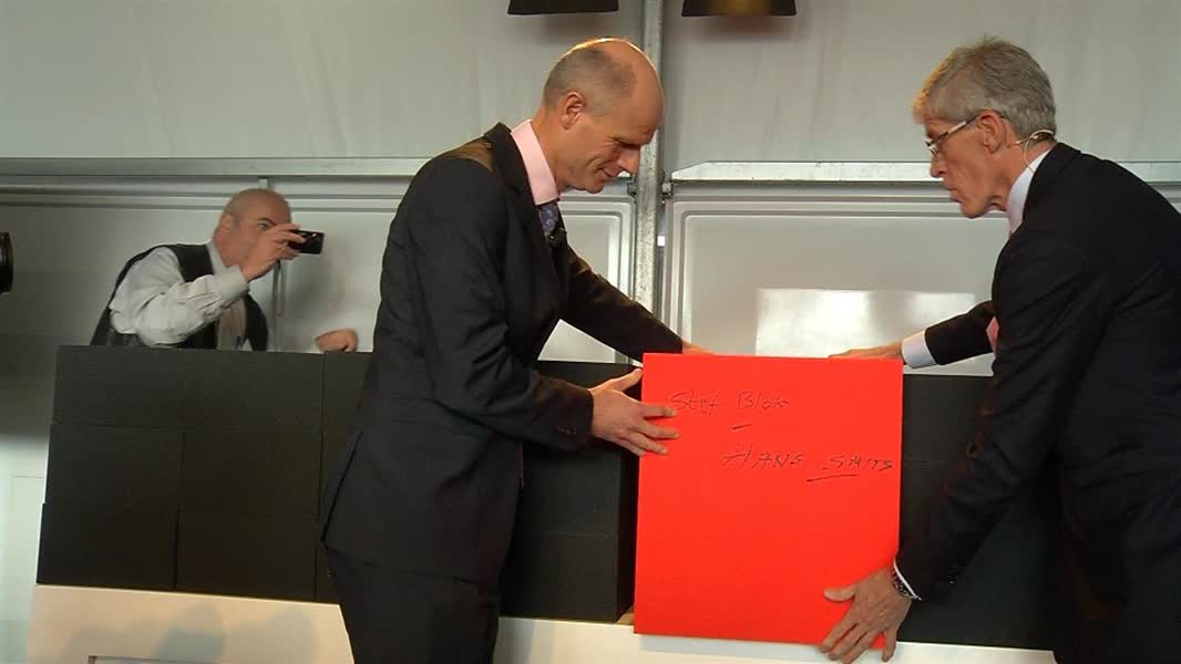 Minister Stef Blok heeft vanmiddag een officiële handeling verricht op bedrijventerrein Dordtse Kil 3. Daar is het hoogste punt bereikt bij de bouw van een distributiecentrum.
