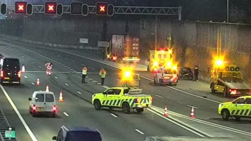 Op de A16 bij de Drechttunnel in Dordrecht richting Rotterdam is donderdagochtend een ongeluk gebeur...