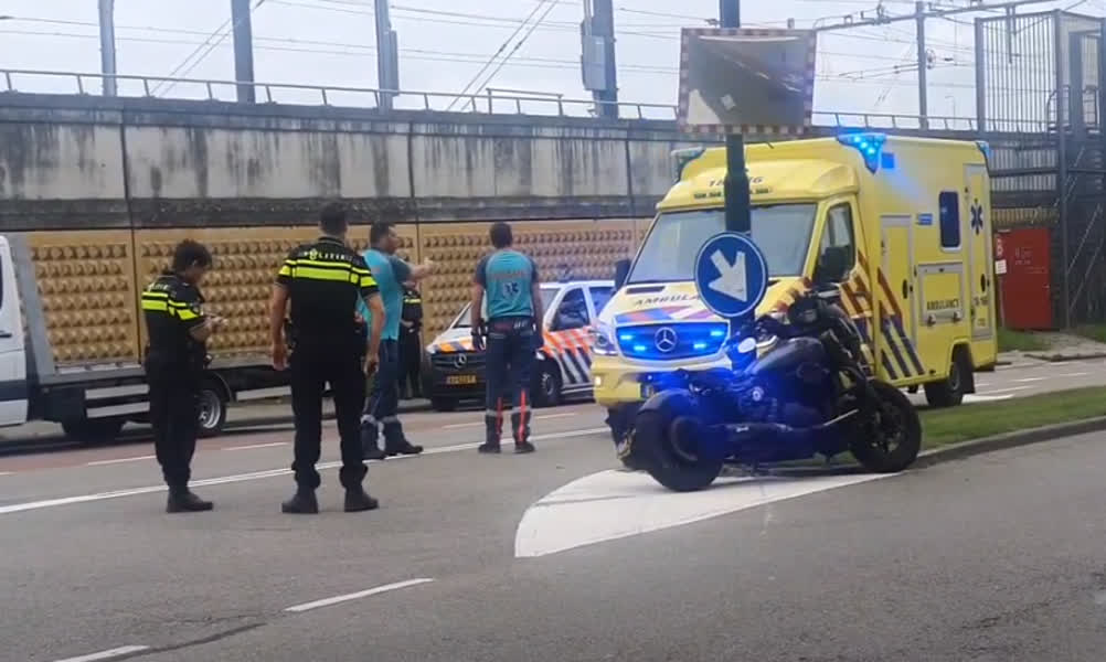 Een motorrijder is maandagochtend ten val gekomen op de Korte Parallelweg, ter hoogte van Maasplaza.