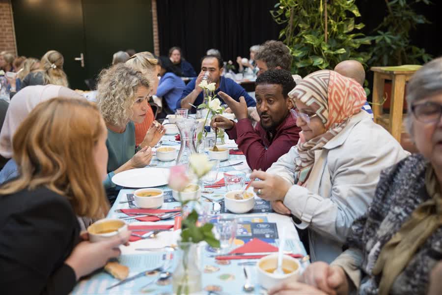 Buurtgenoten kunnen elkaar donderdag 11 oktober ontmoeten tijdens het Nationaal Integratiediner. Resto VanHarte, Stichting Voorlezen en Dirk van den Broek organiseren het diner in het Polderwiel.