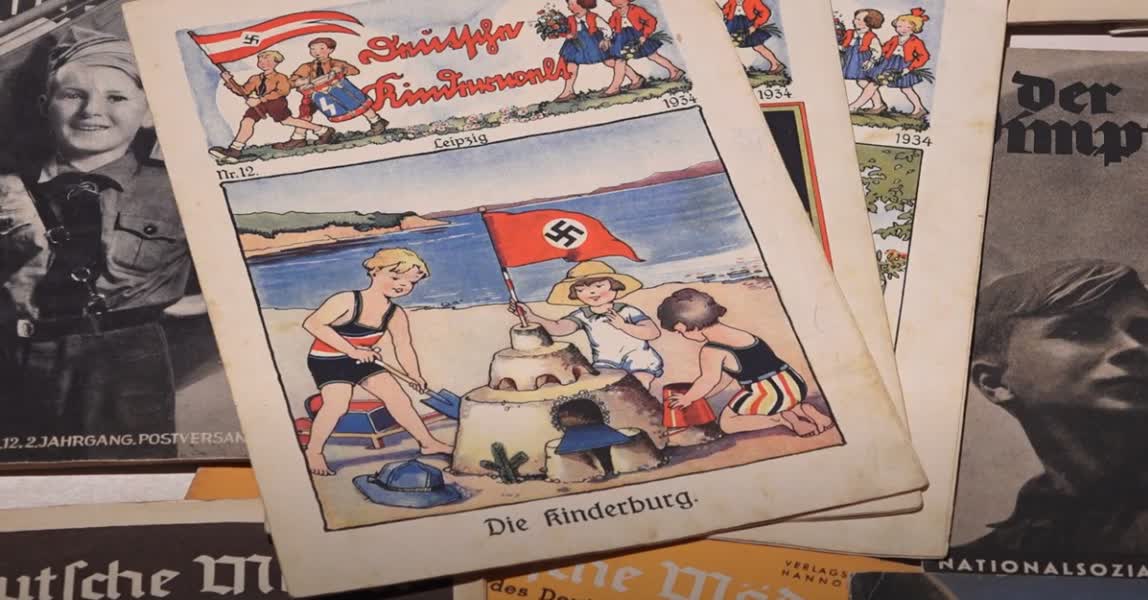Zo zijn in de collectie nationaal-socialistische stripboeken, sprookjes en zelfs Wehrmacht-schaakspellen voor kinderen te zien. Of de speelgoedsoldaatjes met nazistische kenmerken: helmen, uniformen, hakenkruizen en de Hitlergroet. Zulke soldaatjes werden in 1933 onder de kerstboom gelegd. “Duitse jongetjes werden al heel vroeg ondergedompeld in het militarisme, zodat ze later als ze groot waren, soldaat wilden zijn om te vechten voor Duitsland,” vertelt onderzoeker Jacques Dane.