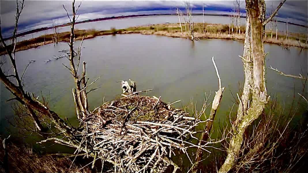 Sinds zondagochtend negen uur is het nest van een visarendstel in de Biesbosch live te zien.