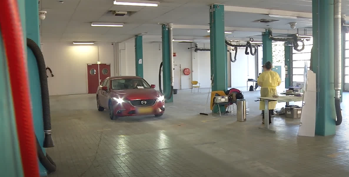 “De vorige teststraat was eigenlijk wel veel mooier”, meldt Adrie van ’t Hof, dagcoördinator van de coronateststraat. “Alleen met wat slechter weer was de locatie toch niet echt handig. Afgelopen weekend is er ook een tent omgewaaid. Hier staan we in ieder geval droog.”