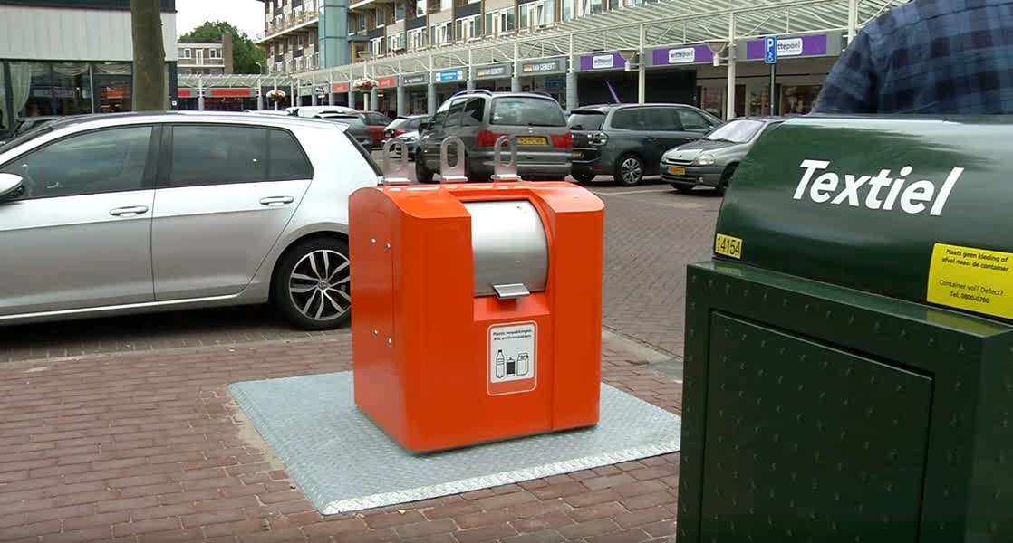 “Deze container maakt er hele kleine pakketjes van en is hier als proef geplaatst”, vertelt hij. Met de proef wil de gemeente het makkelijker maken voor huishoudens in hoogbouw om afval te scheiden.