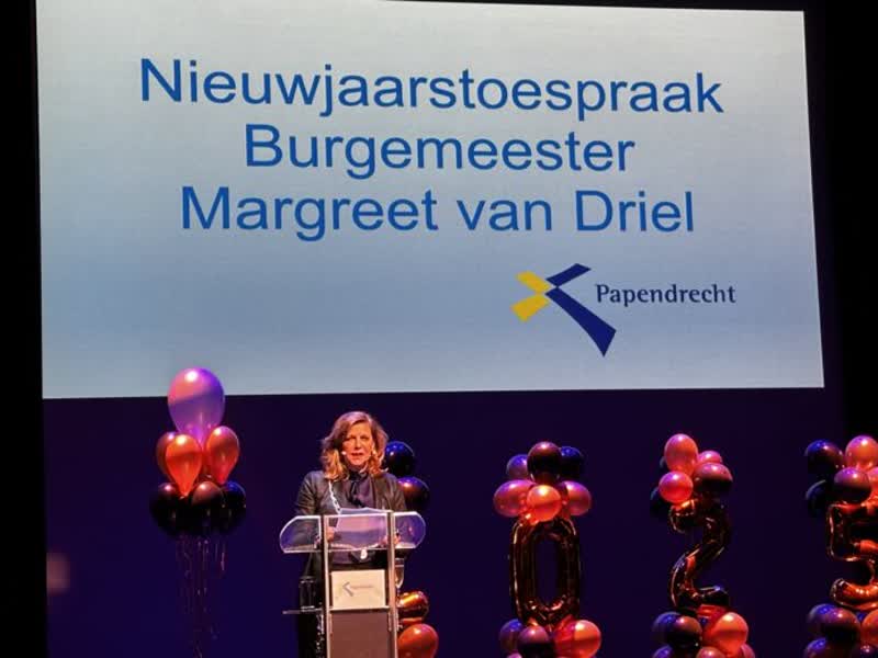 De burgemeester besteedde ook kort aandacht aan twee personen die het afgelopen jaar plotseling zijn overleden. “Speciaal denk ik samen met u terug aan het onverwachte overlijden van ons gemeenteraadslid Lyda Verweij-Heijstek, en zeer recent nog de Operationeel Expert Wijkagent Ron de Jong, die zo lang actief en geliefd is geweest in Papendrecht. We missen alle Papendrechters die ons het afgelopen jaar zijn ontvallen”, liet ze weten.