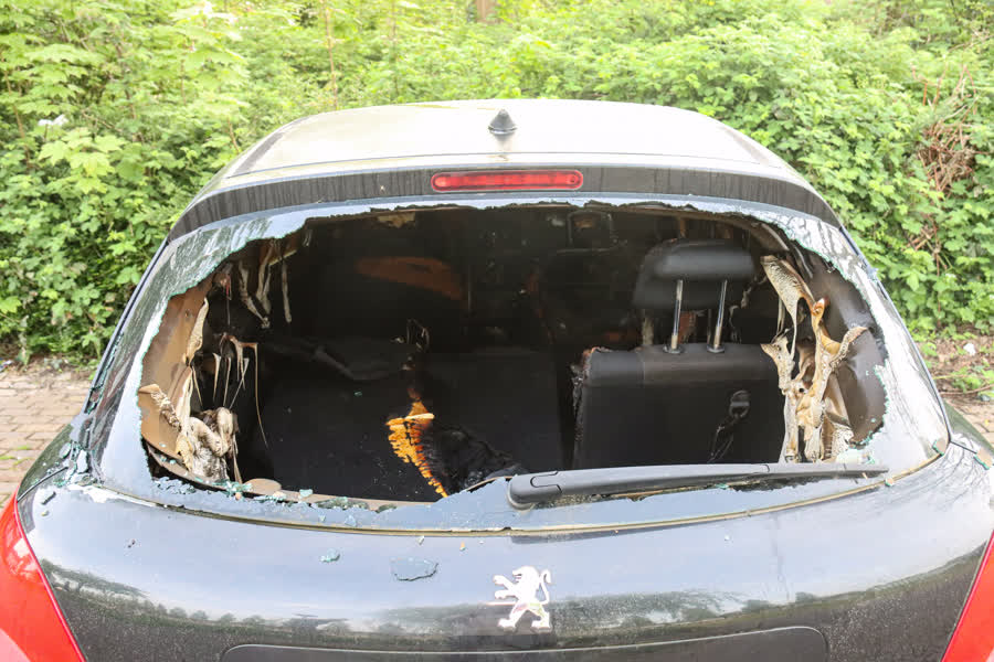 Een geparkeerde auto in de Dordtse wijk Wielwijk is in de nacht van vrijdag op zaterdag uitgebrand. Vooral aan de binnenkant van het voertuig is de schade groot.
