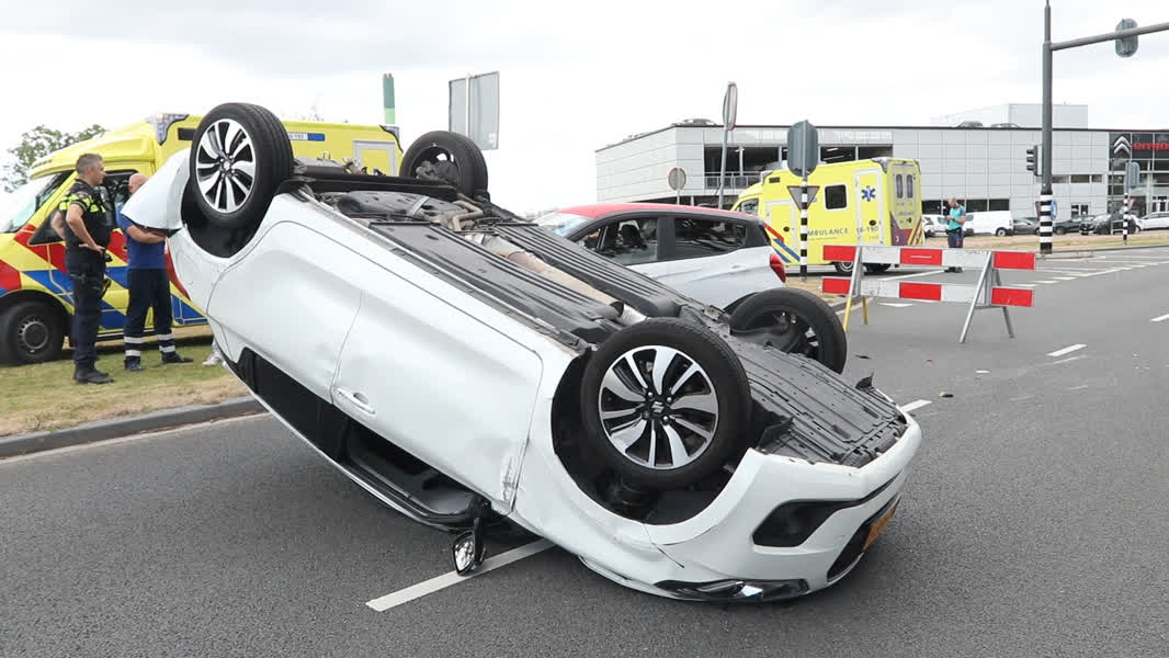 Een automobilist is dit weekend met zijn wagen gekanteld in Ridderkerk. De bestuurder zou eerst op h...