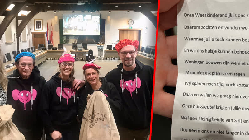 Een ludieke actie van de inwoners van de Weeskinderendijk in Dordrecht. Zij kwamen dinsdag als piete...