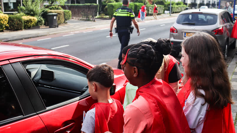 Leerlingen van de basisschool Don Bosco hebben dinsdag, allemaal met een rode cape om hun schouders,...