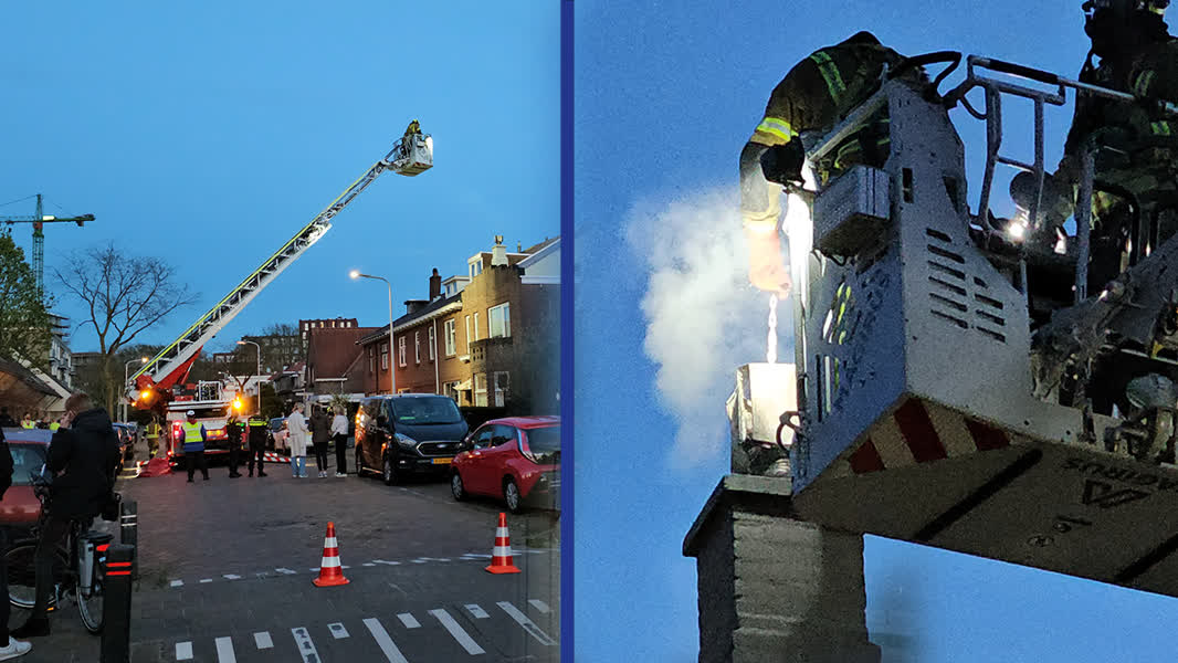 Ter plekke was te zien dat er rook uit een schoorsteen kwam. Vanaf een ladderwagen is de brand met een ramoneur onder controle gekregen.