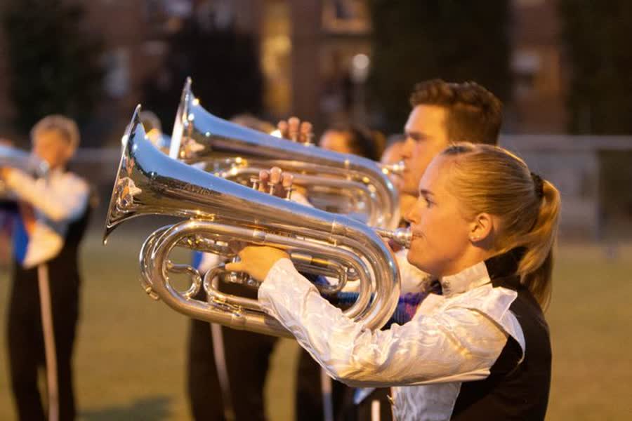 Geen voetbal, maar tromgeroffel en trompetgeschal zaterdagavond op het veld van voetbalclub Oranje ...