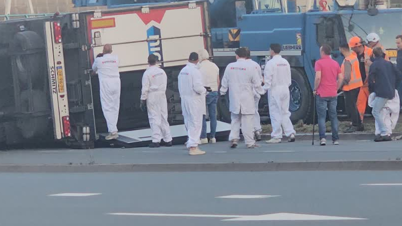 Een koelvrachtwagen van familiebedrijf Nickoot B.V. raakte woensdagmiddag op zijn kant op de Mijlweg...