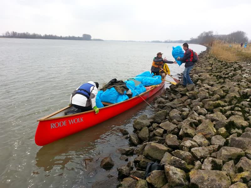 Kanovereniging Dajaks en scoutinggroep Willem de Zwijger organiseren de schoonmaakactie. Het afval en de opruimers worden met kano's en vletten van de waterscouts vervoerd.