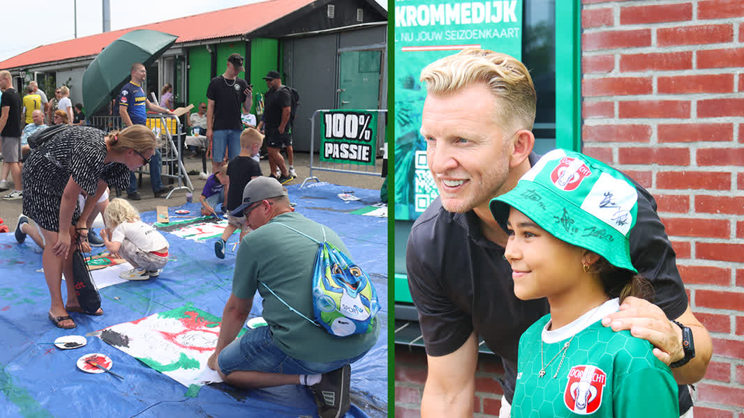 Springkussens, spandoeken, stroopwafels en muziek: FC Dordrecht pakte zaterdag flink uit tijdens de fandag, waarop het met 2-2 gelijkspeelde tegen Excelsior. Toch was voor velen de handtekeningensessie na afloop hét hoogtepunt, met trainer Dirk Kuijt als middelpunt van de belangstelling.