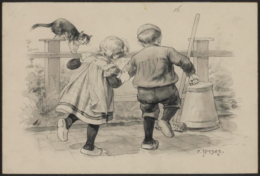 Een plaatje van Ot en Sien, getekend door Cornelis Jetses Onderwijsmuseum - collectie Noordhoff