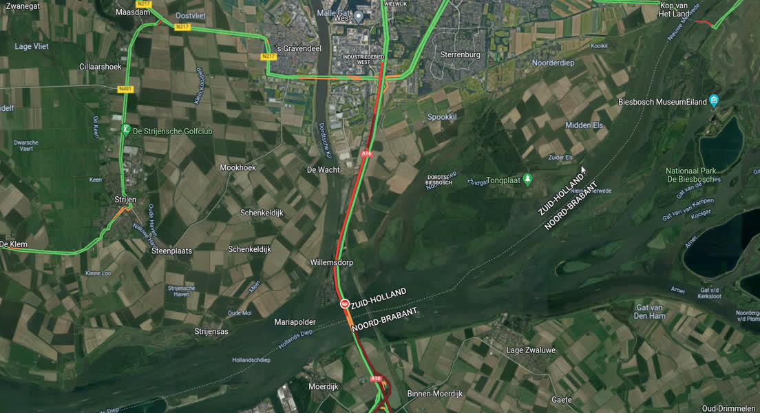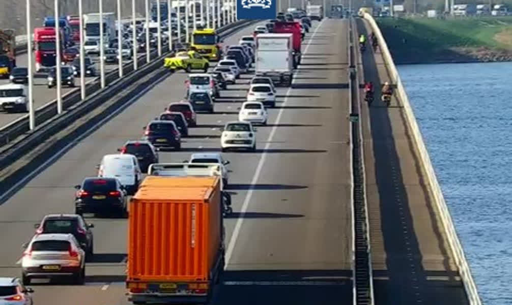 De hele rijrichting van de A16 tussen knooppunt Terbregseplein en knooppunt Ridderkerk is komend wee...
