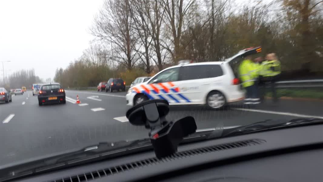 De afrit van de N3 bij Dordrecht was dinsdagochtend moeilijk te bereiken. 4 auto's stonden op de vluchtstrook en de politie blokkeerde de afrit.