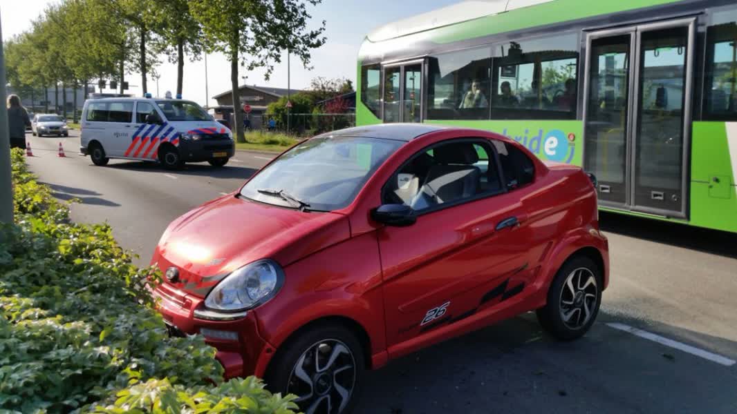 Een bestuurder van een brommobiel is vrijdagavond op de Merwedestraat op de Staart de macht over het stuur verloren.
