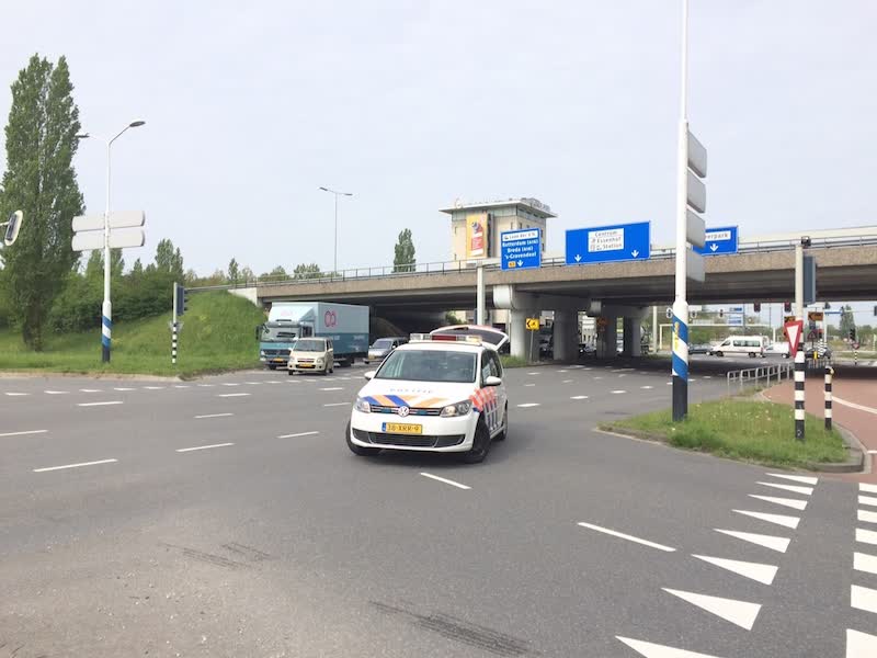 Politie en ambulance waren snel ter plaatse om de oprit af te sluiten en de bestuurder met een open beenwond af te voeren naar het ziekenhuis. Na ongeveer 20 minuten was de oprit weer open voor verkeer.