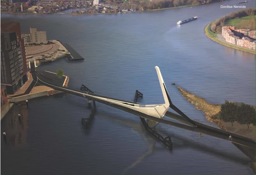 Het winnende ontwerp is vanavond bekendgemaakt in Dordtyart. De kleuren van het bouwwerk zijn antraciet en zilvergrijs. In de mast komen schijnwerpers die de brug verlichten. De brug is bedoeld voor voetgangers en fietsers.