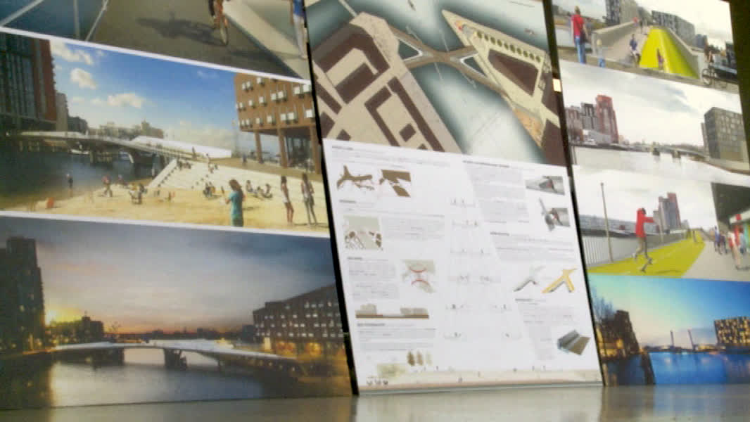Bij DordtYart in de Biesboschhal. Het winnende ontwerp wordt in juni gekozen. De Prins Clausbrug gaat Stadswerven verbinden met de binnenstad.