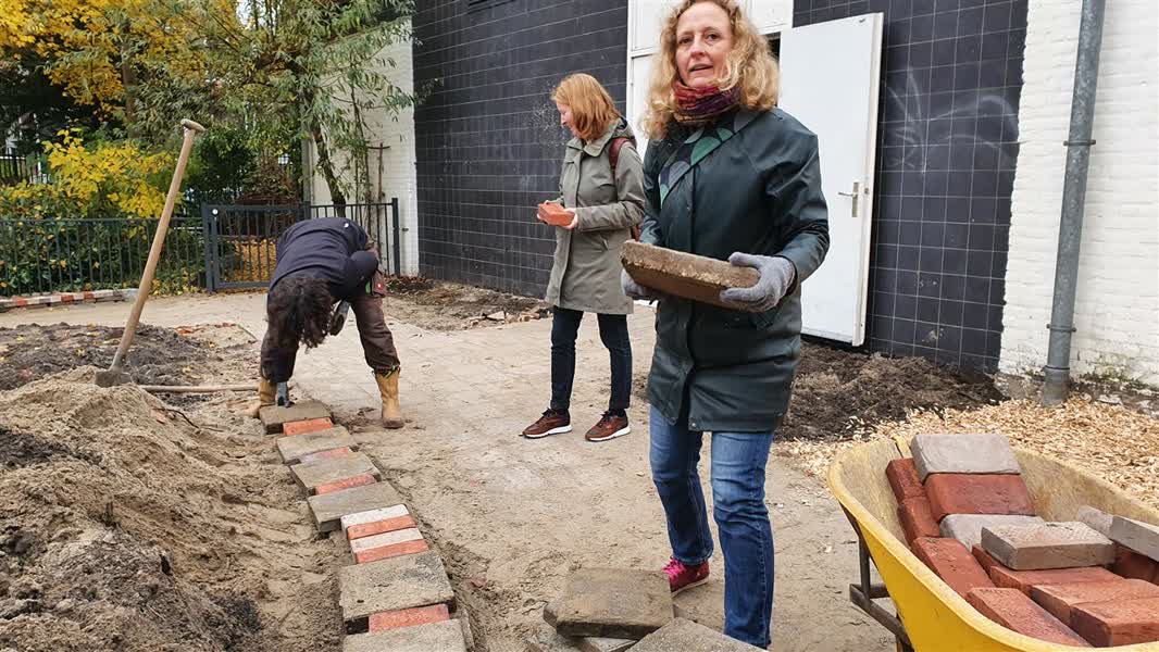 Ouders van de leerlingen helpen de hoveniers mee met het verbouwen. Iedereen is welkom om een handje te helpen. Zo hebben ook de ouders, kinderen, leerkrachten en buurtbewoners meegedacht aan het ontwerp van het schoolplein. “Zo komt er een wadi voor waterberging op het laagste punt van het plein, worden heel veel stoeptegels hergebruikt tot tribunes en randen voor plantvakken en komen er heel veel planten en bomen bij”, beschrijft Nienke Bouwhuis, één van de ontwerpers van Bureau Krachtgroen.