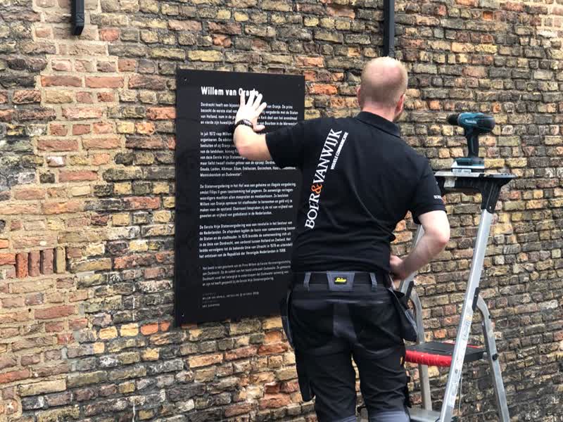 Oudewater is nog altijd niet vermeld op de sokkel, maar wel op een informatiebord, dat vrijdag geplaatst werd op de achtergevel van de Berckepoort. De gemeente Dordrecht deed dat in stilte. Burgemeester Kolff onthulde samen met zijn collega van Oudewater het bord en de foto daarvan zou maandag verspreid worden.