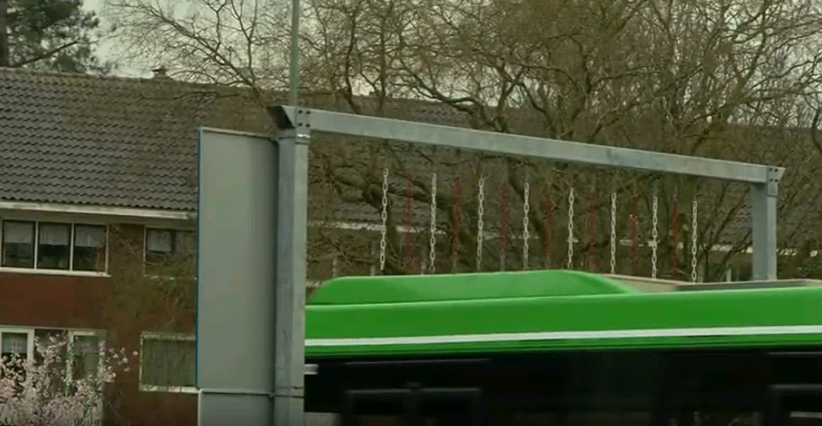Met name het laatste stukje van de bussen van Qbuzz zijn net iets te hoog voor de hoogtemelder. Met een donderend geraas klappen de kettingen op de bus als deze er onderdoor rijdt. En dat terwijl Qbuzz de bussen zo stil mogelijk maakt door onder meer met elektrische bussen te rijden.