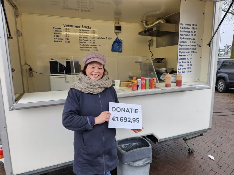 De eigenaresse van de Vietnamese loempiakraam aan het Damplein in Dordrecht kan weer lachen. Nadat haar kraam in december vorig jaar volledig werd leeggeroofd, is via crowdfunding bijna 1700 euro opgehaald.