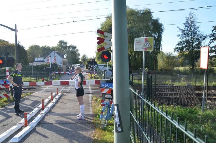 Vanwege de storing mag er geen verkeer over de overweg, de politie bewaakt de overgang en wijst mensen de weg naar een alternatieve route. Omrijden kan via de kilweg.