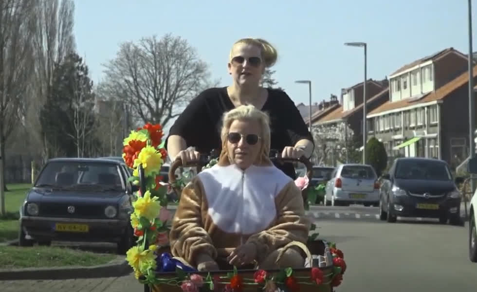 Het buurthuis op de Staart is door de coronamaatregelen al een tijdje dicht, en dat is voor de kinderen niet leuk. Wilma en Stacy van BuurtWerk besloten daarom iets leuks voor hen te organiseren en trokken gewapend met een versierde bakfiets en een paashazenpak door de wijk.