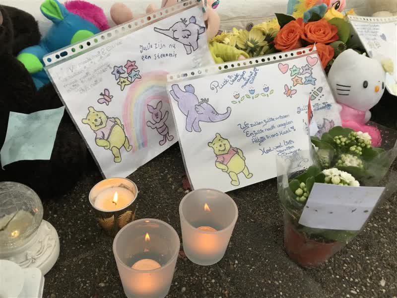 Tientallen mensen hebben knuffels, bloemen en tekeningen neergelegd bij het huis in Papendrecht waar zaterdag twee kinderen en twee volwassenen om het leven kwamen.