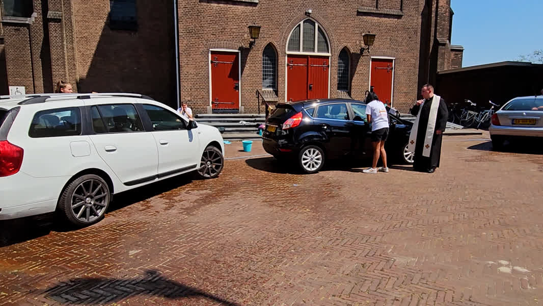Je auto laten wassen en dopen bij een Dordtse kerk: afgelopen zaterdag kon het bij de Sint Antoniuskerk aan de Burgemeester de Raadtsingel. De kerk zamelde hiermee geld in voor een reis naar de Wereldjongerendagen in Lissabon.