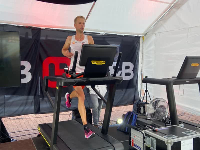 Een eerdere training van dertig kilometer op het gewenste tempo liep op rolletjes. "Ik had eigenlijk gewoon kunnen doorlopen naar de finish op dat moment", zei hij toen. Toch wist hij dat het zwaar kon worden op de grote dag. "Het verschil tussen lopen op straat en op een loopband is vooral mentaal. In Rotterdam kun je denken: ha, daar staan een hoop vrienden. Of hé, daar gaan we de Erasmusbrug op, zo weer lekker naar beneden. Daar kun je dan een beetje naar uitkijken. Op een loopband sta je op één vierkante meter, je komt niet vooruit, maar je bent je wel helemaal de tandjes aan het rennen."