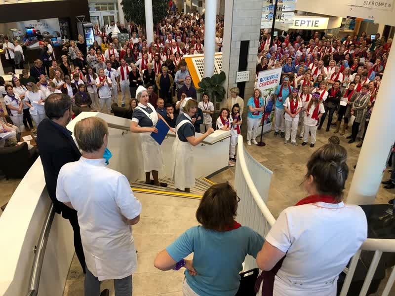 “We staan hier voor een betere CAO, want alleen daarmee krijgen we jullie beroep aantrekkelijker en dus uiteindelijk meer handen aan het bed!”. Met die woorden stak Van Leiden het personeel woensdagochtend in de centrale hal toe.