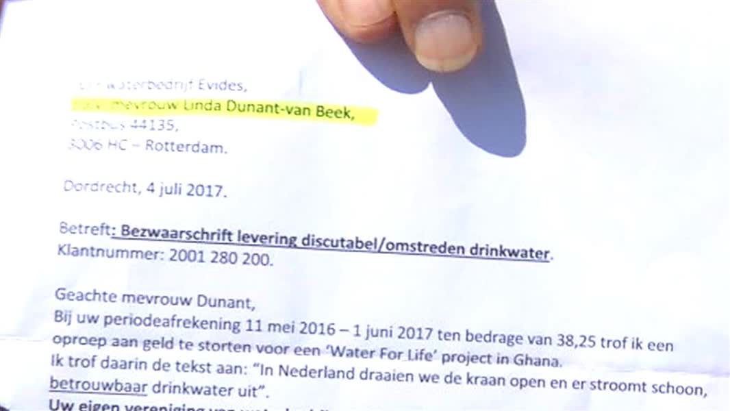 Hij heeft het bedrijf in een brief te kennen gegeven dat hij een deel van zijn water abonnementskosten terug gestort wil krijgen. Het gaat hem uitsluitend om het gedeelte van zijn waterverbruik dat hij gebruikt om te drinken. Aanleiding voor deze actie is dat hij de kwaliteit van het drinkwater niet meer vertrouwt vanwege lozingen door Chemours aan de Baanhoekweg van de stof GenX.