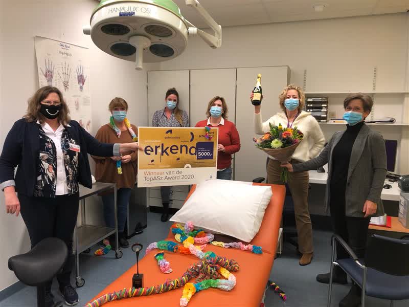 De verpleegkundigen van Plastische Chirurgie hebben de TopASz Award 2020 gewonnen. Dit is de prijs die de Cliëntenraad van het Albert Schweitzer ziekenhuis jaarlijks uitreikt aan een zorgverlener of afdeling die zich buitengewoon heeft ingespannen om zo patiëntvriendelijk en gastvrij mogelijk te zijn. De kanshebbers hiervoor worden elk jaar aangedragen door patiënten en collega's.