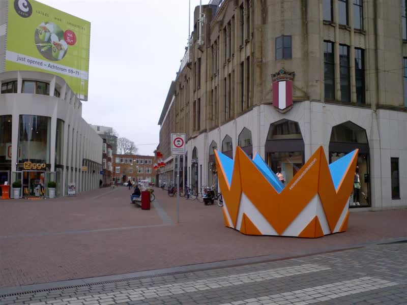 De kroon die voor het station stond, staat sinds vanochtend voor het Lindershuis.